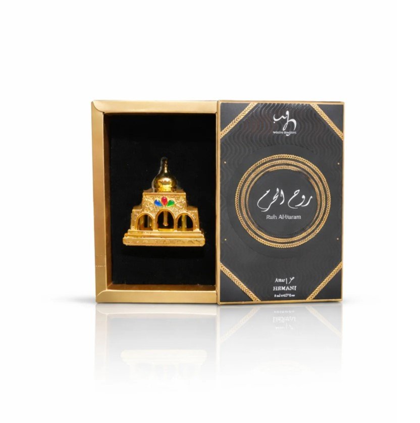 Ruh Al-Haram is a deeply spiritual and captivating attar that reflects warmth, depth, and timeless elegance. It opens with a rich oriental aura, gently unfolding into a heart of soft woody accords wrapped in subtle sweetness. As it settles, warm amber, musk, and deep resinous notes create a lingering trail that feels comforting, serene, and profoundly refined.